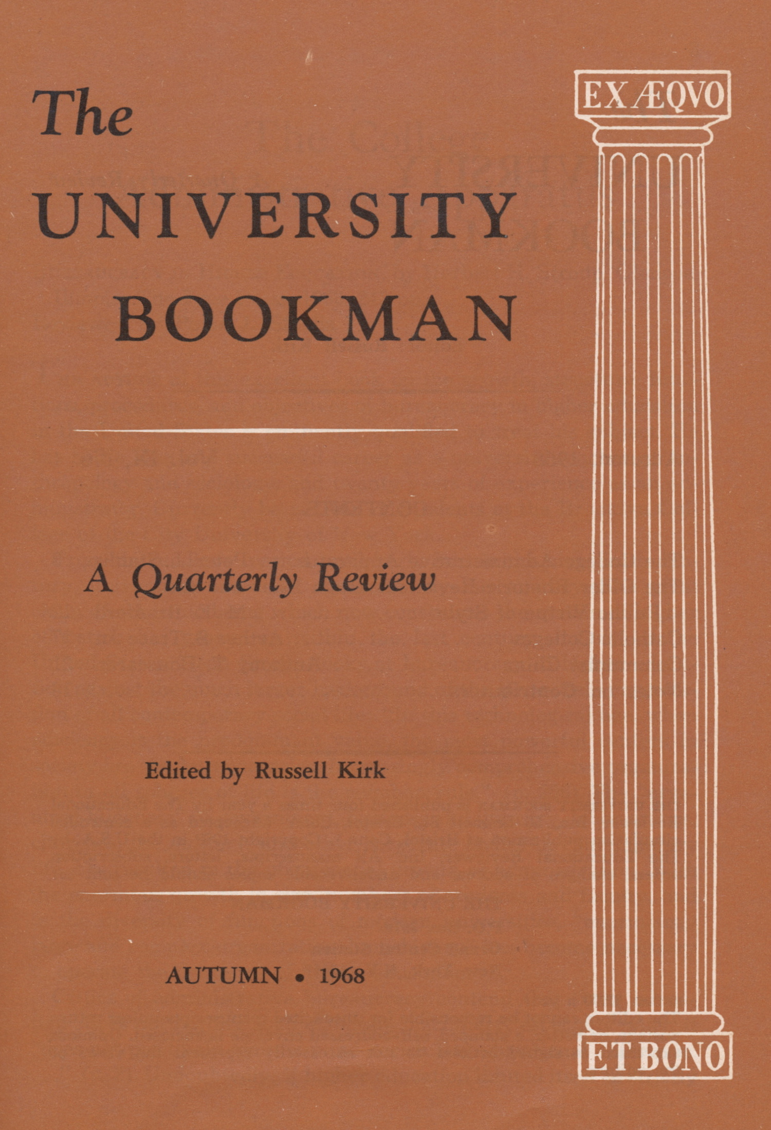 The University Bookman.  By request of the Kirk Center and Kirk Legacy, LLC, I have removed all issues of The University Bookman.  I’m terribly sorry, but you might be able to find partial runs of the journal at major university libraries.